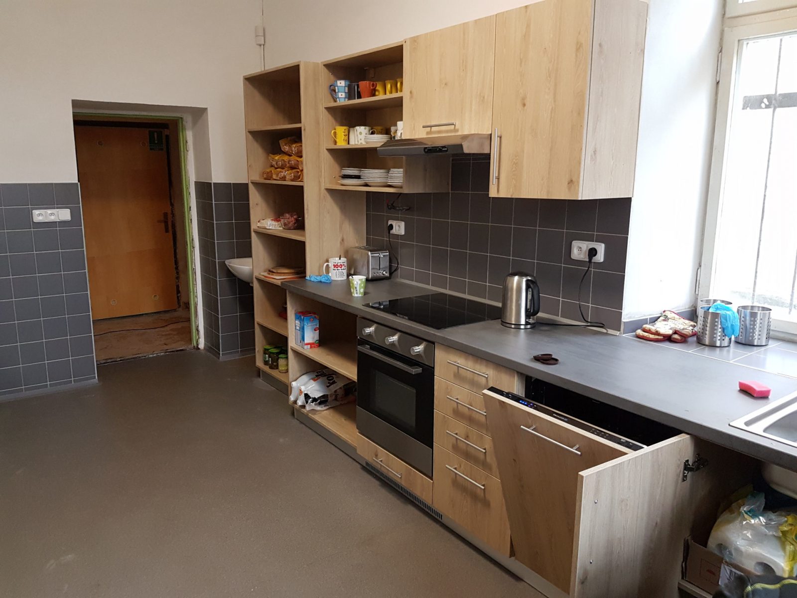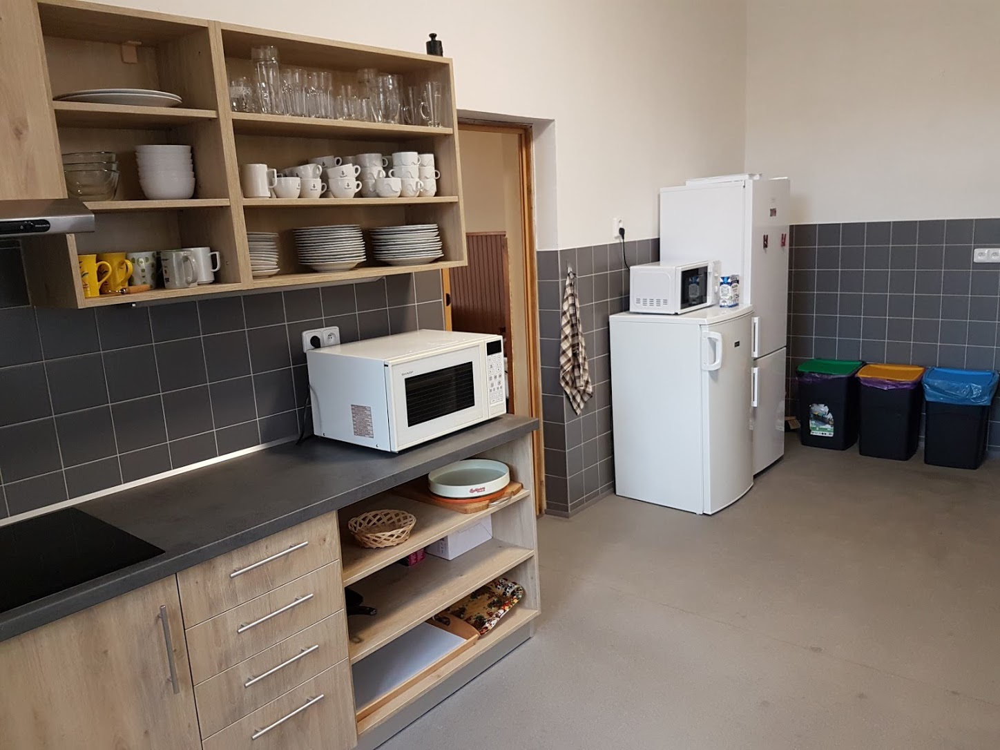 Samoobslužná kuchyň – 2 lednice (1x mrazák), mikrovlnka, 2 sporáky (sklokeramika), 1 trouba, myčka